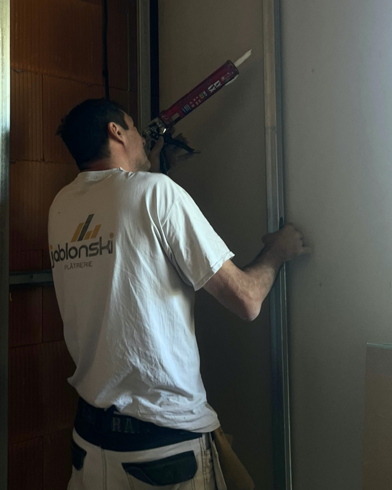 Chez Jablonski Plâtrerie, nos plaquistes assurent une installation précise et conforme aux normes en vigueur, afin d’offrir à nos clients des espaces solides, fonctionnels et bien isolés.
